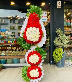 Kırmızı Beyaz Gerbera Ayaklı Sepet