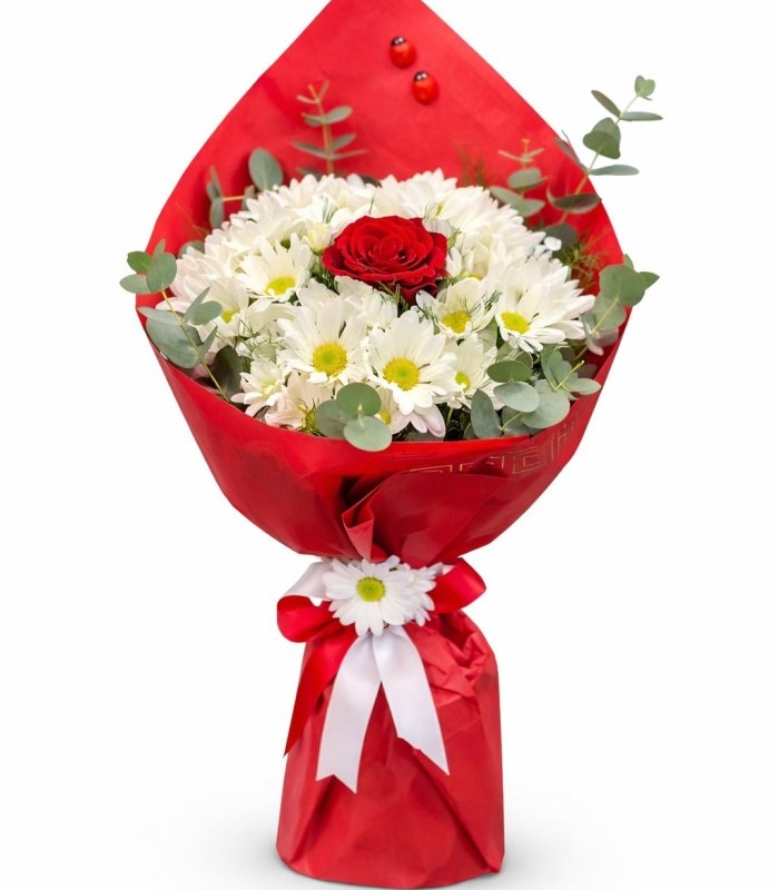Kırmızı Paketli Beyaz Papatya