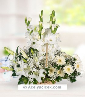 Beyaz Gerberalı Ayak Sepet